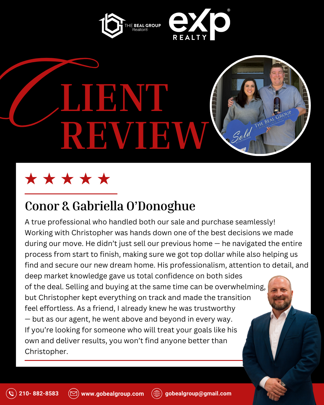 Choosing the right Realtor in San Antonio is about more than credentials, it’s about finding someone you trust with your future. With a proven record, veteran-owned values, and recognition among San Antonio’s Top Realtors, Christopher Beal is the partner who will help you achieve your real estate goals.